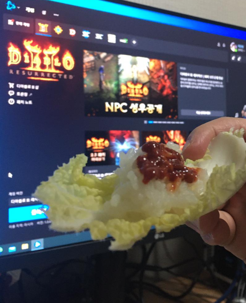 배추 위에 밥 올리고 속젓 올려서 먹음 끝장입니다!
