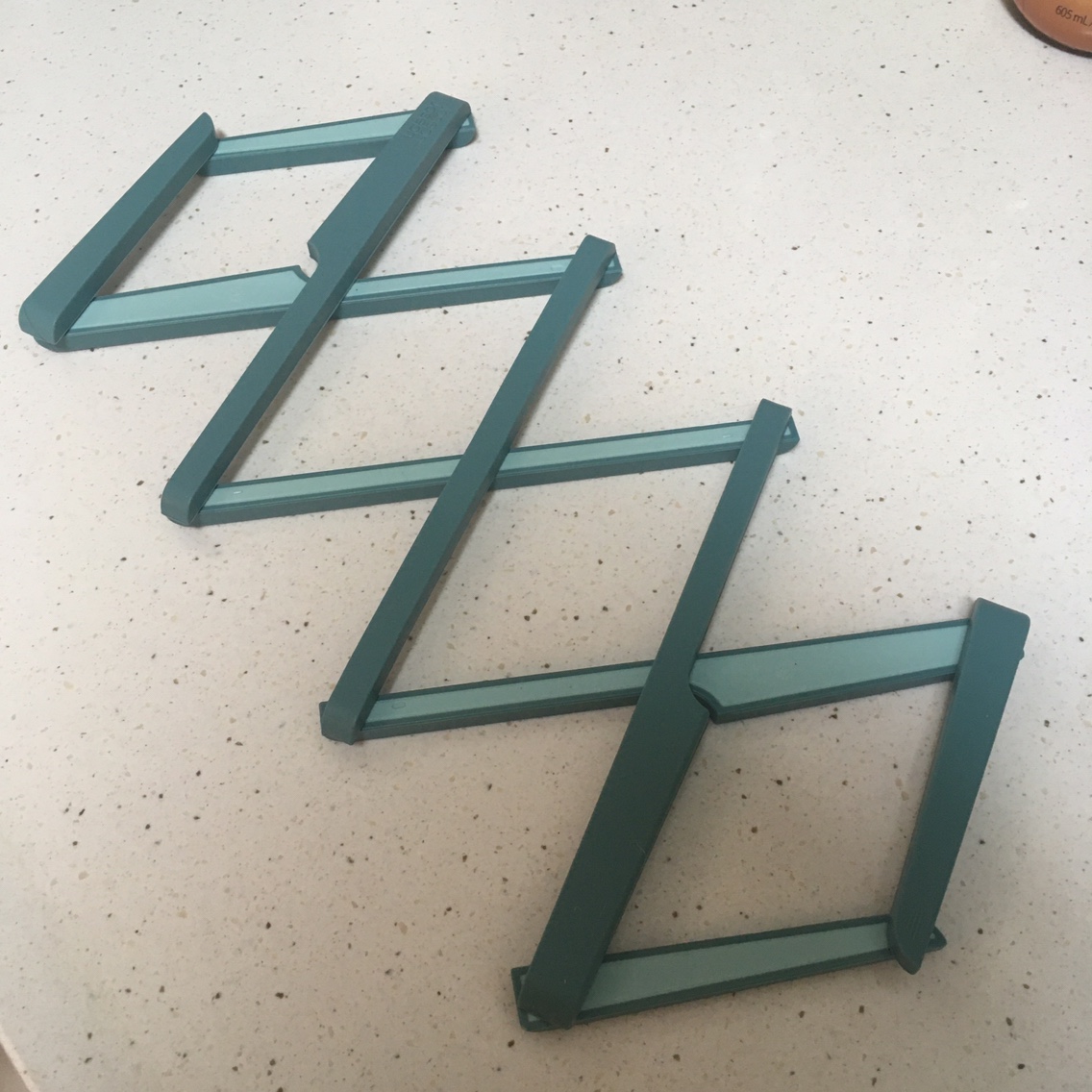 스트레치 냄비받침을 최대로 벌리면 냄비를 두개까지 놓을 수 있답니다. 또한 쓰지 않으 때에는 벌렸던 냄비받침을 제자리로 모으면 서랍에도 깔끔하게 보관할 수 있다는 점이 인상적입니다.