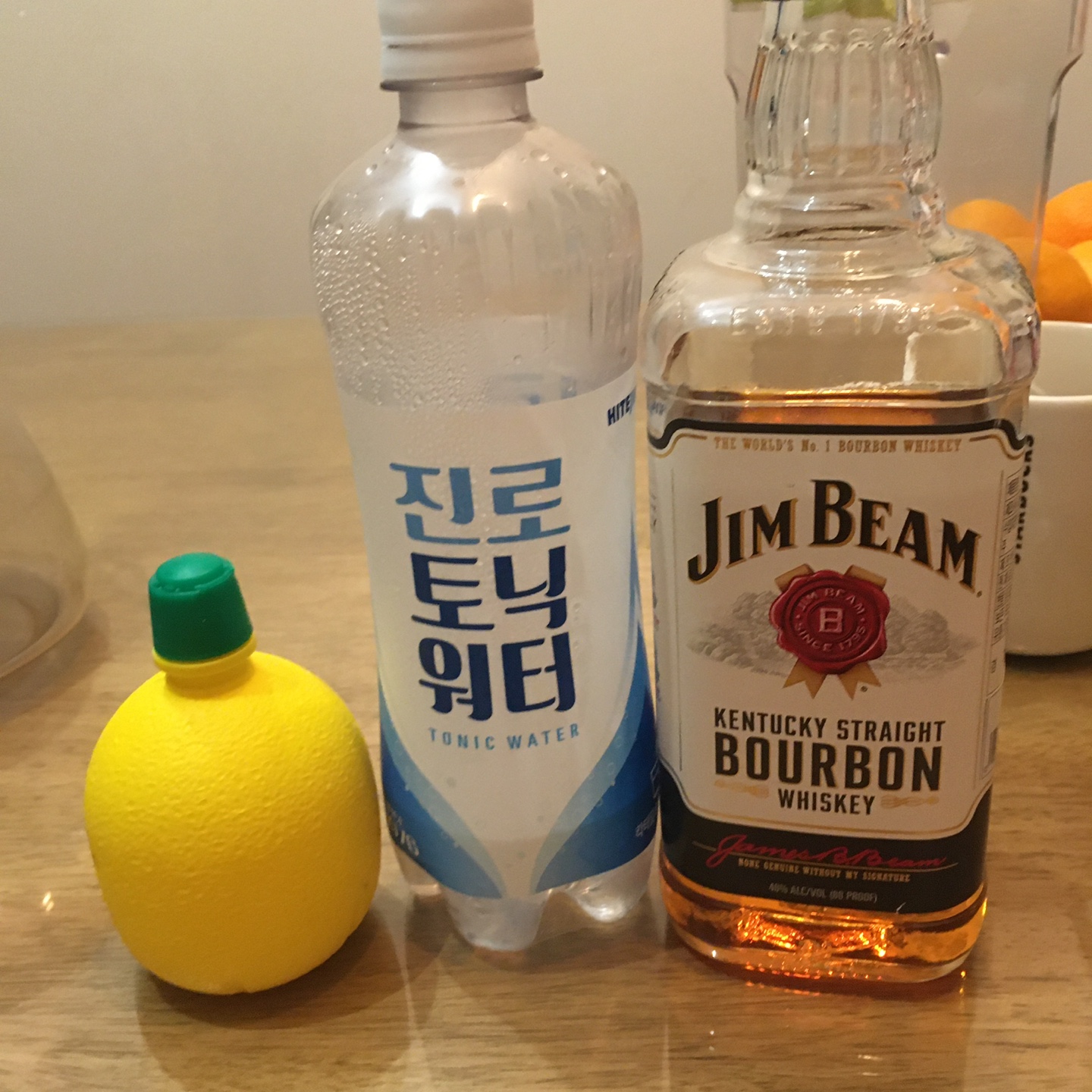 짐빔, 토닉워터, 레몬즙(생레몬이 있다면 더욱 좋아요)